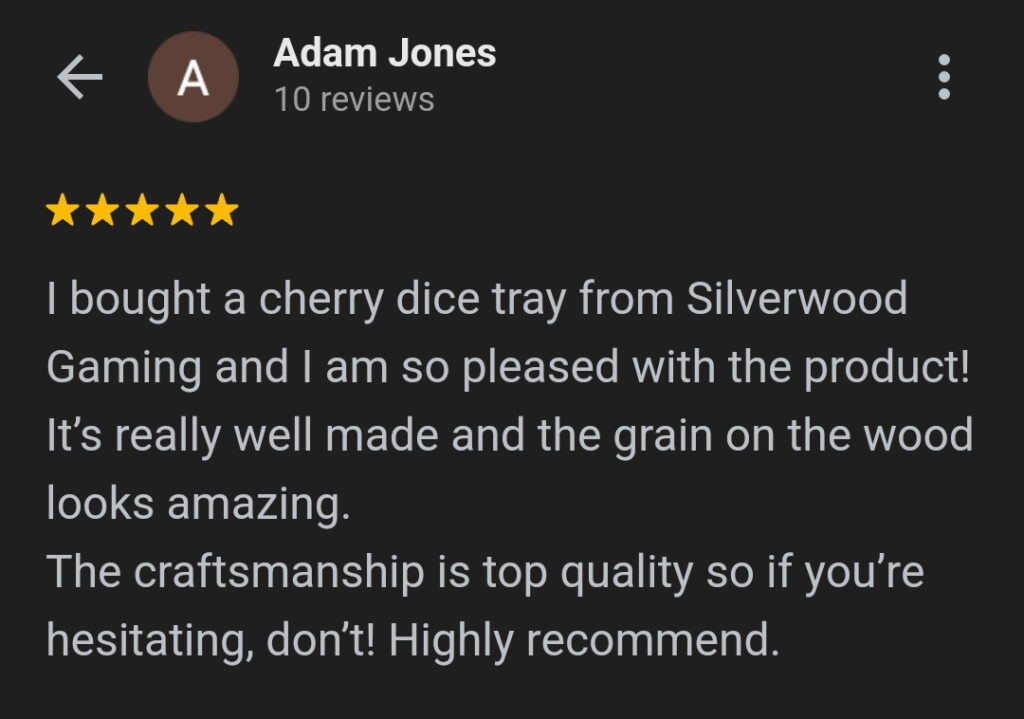 “Thanks for sending us these beautiful Dice Trays!!!”